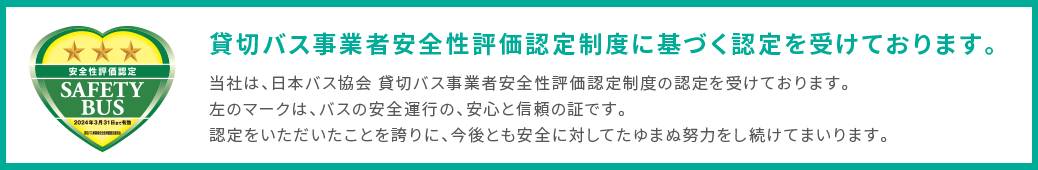 安全装備が充実している最新型車両のバス・タクシーを取り揃えて 皆様方のご用命をお待ちしています。 大きさで選べるバスのタイプ 用途で選べるタクシーのタイプ キャンセルチャージ ご予約の取消・変更は次の区分のキャンセル料・手数料がかかります。 ※以下はご予約料金に対しての利率です。 ◾️配車日の14日前から8日前まで 所定の運賃及び料金の20%に相当する額 ◾️配車日の7日前から24時間前まで 所定の運賃及び料金の30%に相当する額 ◾️配車日の24時間前以降 所定の運賃及び料金の50%に相当する額